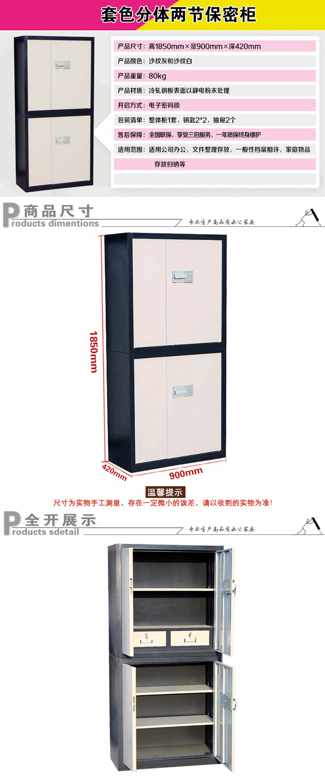 套色分體兩節保密柜帶屜
